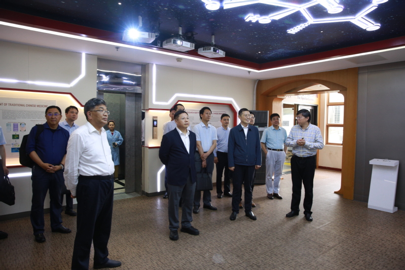 座谈前,乔学斌、程海波一行在曹锡康的陪同下,考察了上海中医药大学创新中药研究院,认真听取了研究院在创新中药研发、成果转化等方面的详细介绍,并就中医药科技创新、产学研合作等与科研人员进行交流。