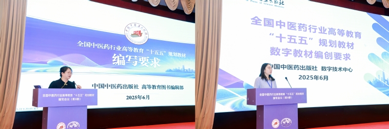 中国中医药出版社高等教育图书编辑部主任张立军、数字技术中心专员王梦薇分别就纸质教材的编写、数字教材的编创要求作详实而深入的讲解。