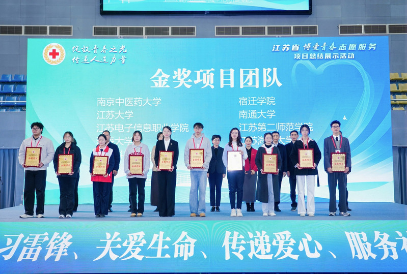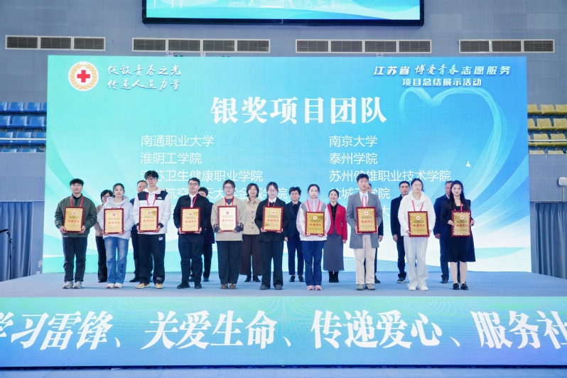 会议现场颁发了2025年全省高校红十字会“博爱青春”暑期志愿服务活动金、银奖项目各10项,我校《“岐黄‘益’行暖盐城,博爱相伴护弱行”》项目获十佳金奖第一名并作大会现场交流展示。